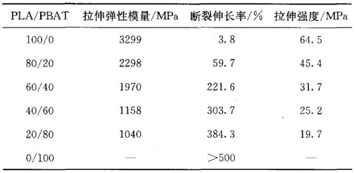 PLA与PBAT有着互补的性能,因此必然存在综合性能最好的质量比。